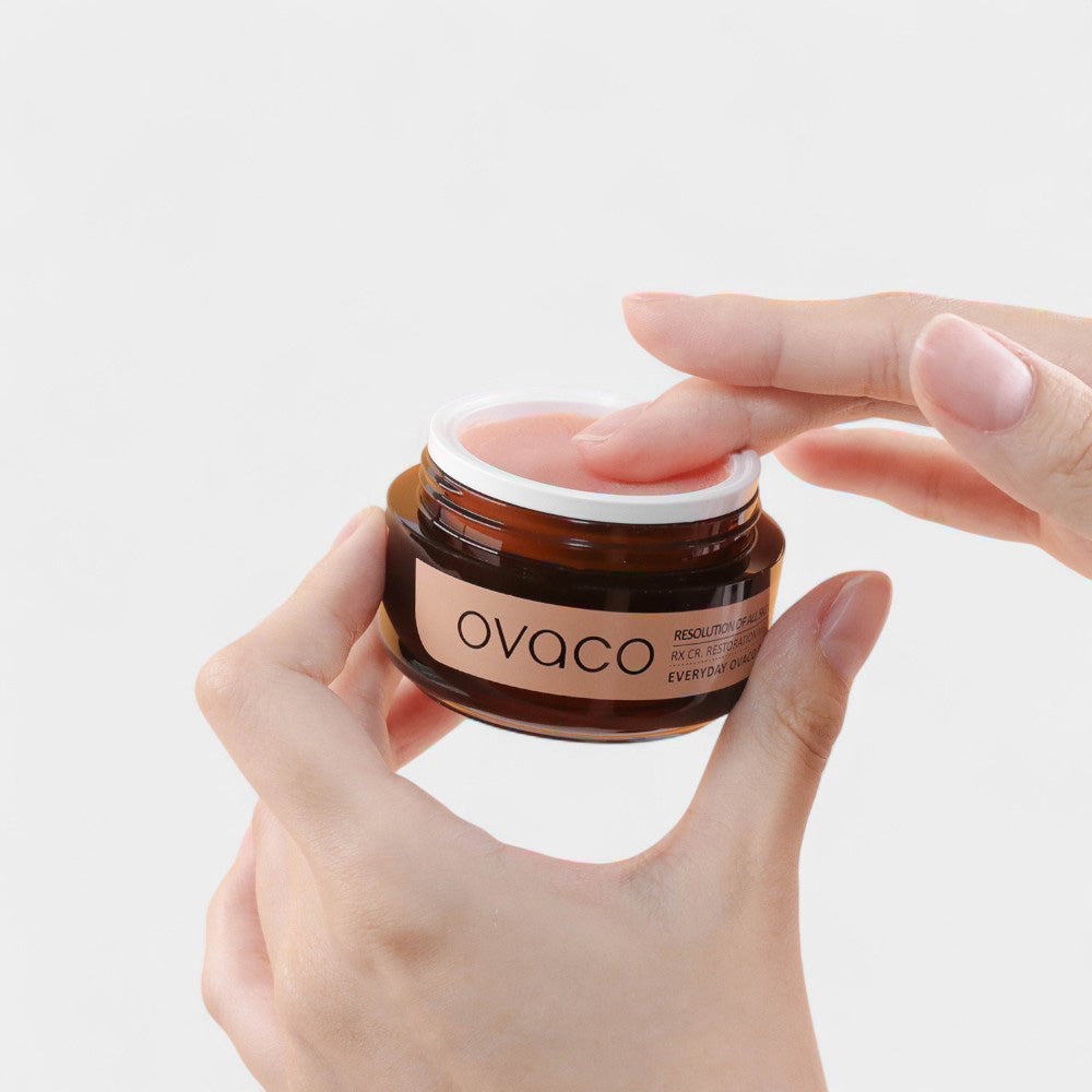 En Jessica incorporamos este cosmético de Ovaco en formato 30 ml para reforzar rutinas específicas de cuidado en cabina o en casa. Crema para el tratamiento de todo tipo de problemas severos de las pieles sensibles (elixir cream restoration mechanism apply). Esta crema se basa en “Jawoongo”, un ungüento a base de una mezcla de hierbas usado en medicina tradicional, un producto multiusos para aliviar los síntomas de las alteraciones más severas de la piel. Entre sus ingredientes principales se encuentra: Naflex 5: complejo de ingredientes patentado por Ovaco, con Escualeno, Fitoesfingosina y 12 extractos herbales naturales entre los que se encuentran Angélica, Caqui, Regaliz y Peonía (sin silicona). Esta crema es fruto del encargo de clínicas dermatológicas a la marca coreana Ovaco, la cual, en colaboración con el Instituto de Bio Cell Fusion & Science, la desarrolló para el tratamiento de los problemas más severos de las pieles sensibles. Conocida como “la crema del acné”, se utiliza como parte del tratamiento para el acné, pero sus usos van mucho más allá. Puede utilizarse como bálsamo para calmar irritaciones de la piel, como las producidas por una prolongada exposición al sol, o las propias de pieles atópicas severas o con otro tipo de problemas como psoriasis, eczemas, sequedad crónica, etc. Dada la naturaleza de sus ingredientes también puede usarse para alteraciones de la delicada piel de los bebés. Para tratamientos para el acné, una combinación de productos muy efectiva sería: 1 Limpieza con aceite de Savia. 2 Aplicación de tónico Perfect Rhythm Rebalance 3 Aplicación de serum Double Intensify Effect 4 Aplicación de crema Restoration Mechanism Apply